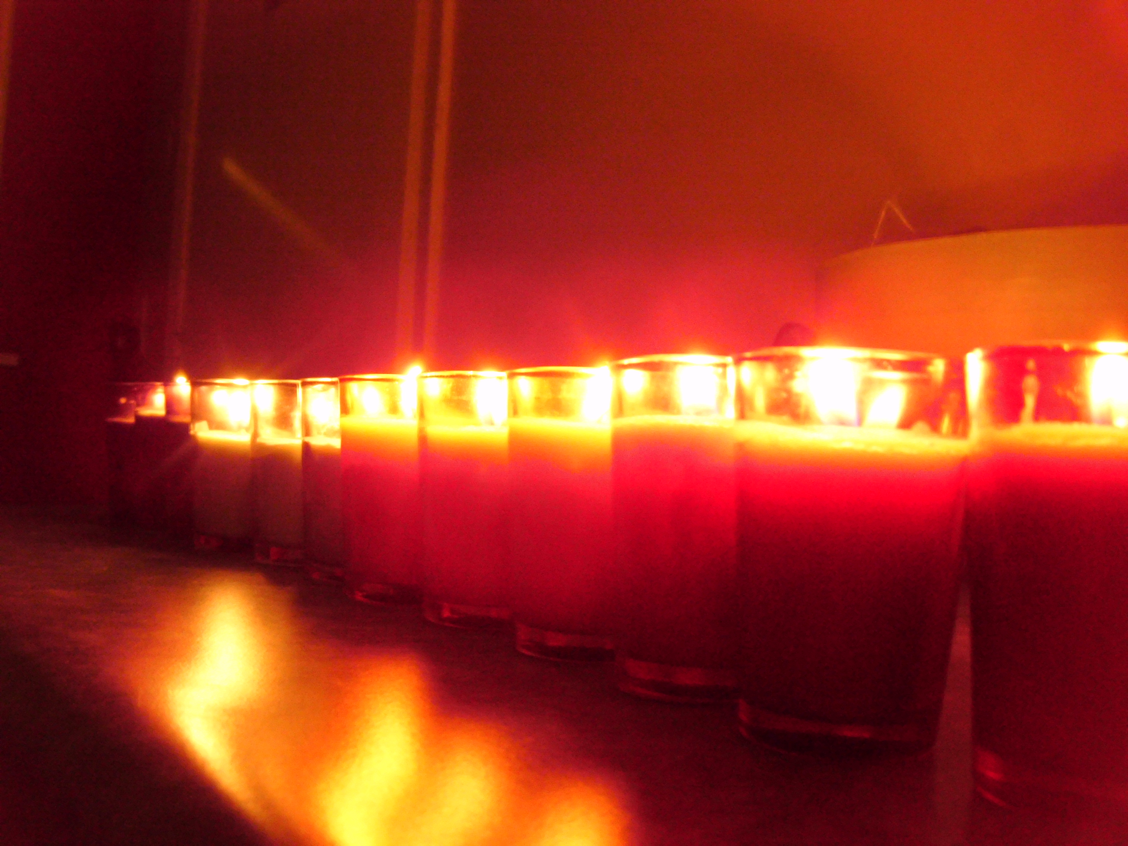 These little candles are about the size of a shot glass, from what I’ve heard. I don’t have any personal experience with a shot glass. But, these candles came a dozen to a pack for $7 bucks. You can’t beat that, less than a buck a pop! And here they are all lit up:
