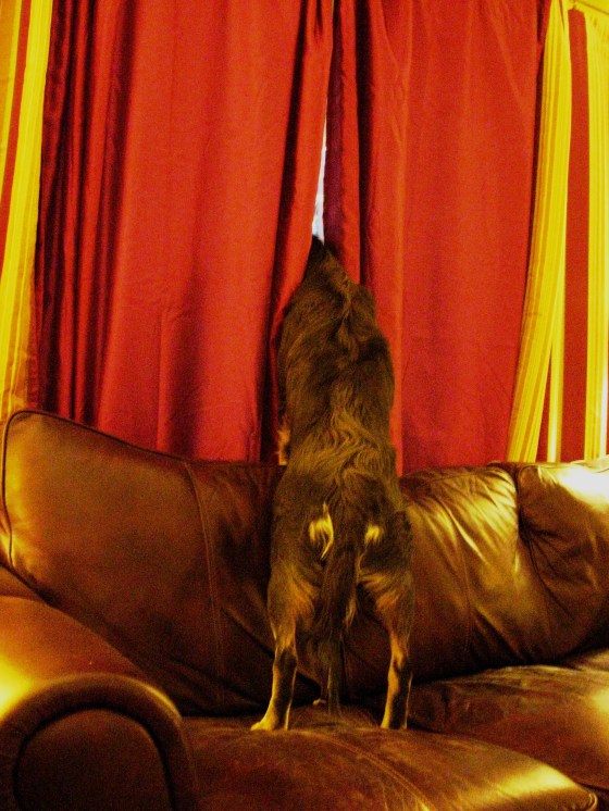 Annie dog especially loves being sneaky about spying on the neighborhood, while lounging on the sofa.