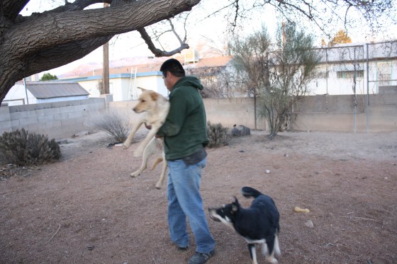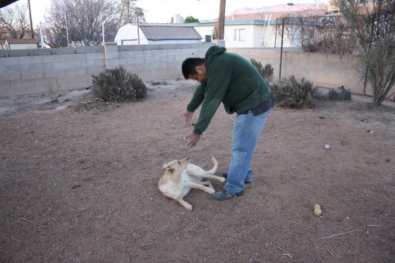 As you can see, we’ve got a lot of work to do. Only half the yard has been stripped of it’s gravel. And that half hasn’t been tilled under and seeded yet. And I am still researching pet friendly and desert friendly plants to put in the flower beds.