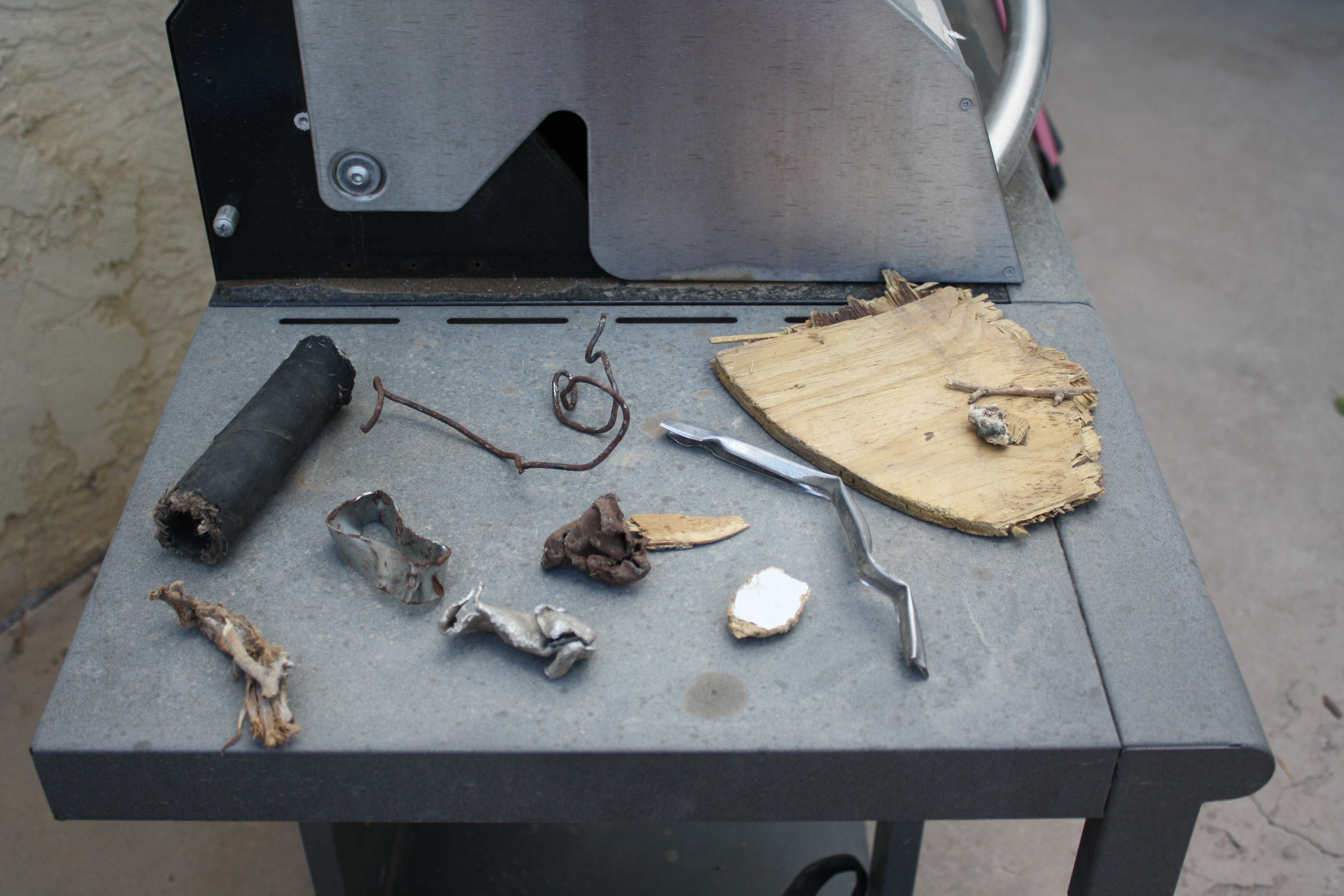 Scary pieces of sharp metal, large pieces of ugly particle board, and various chunks of trash.