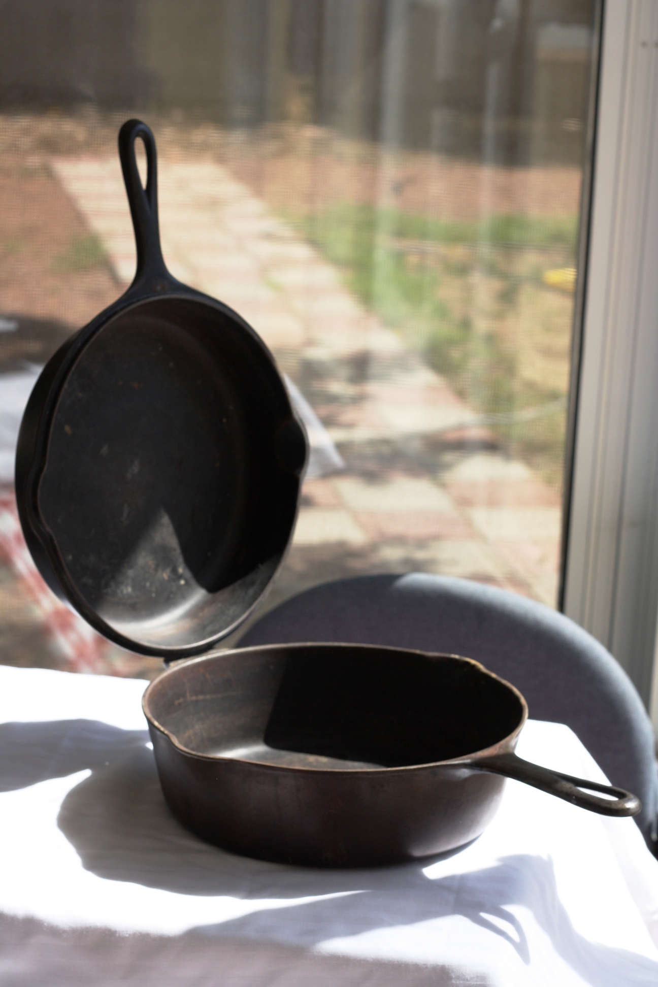 This pot is a Griswold Double Hinged Skillet. (Looks like he’s smiling for the camera doesn’t it?) He was picked up at Goodwill for $30, apparently that’s a pretty good deal on a skillet from this maker. Honestly, I’m not the one who picks this sort of thing up. Bubba is the cook of casa de yellow so he’s usually the one on the look out for this sort of thing.