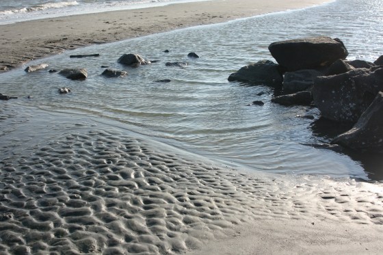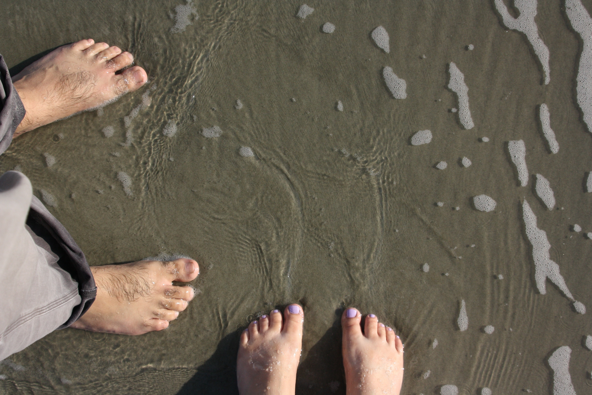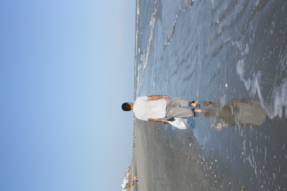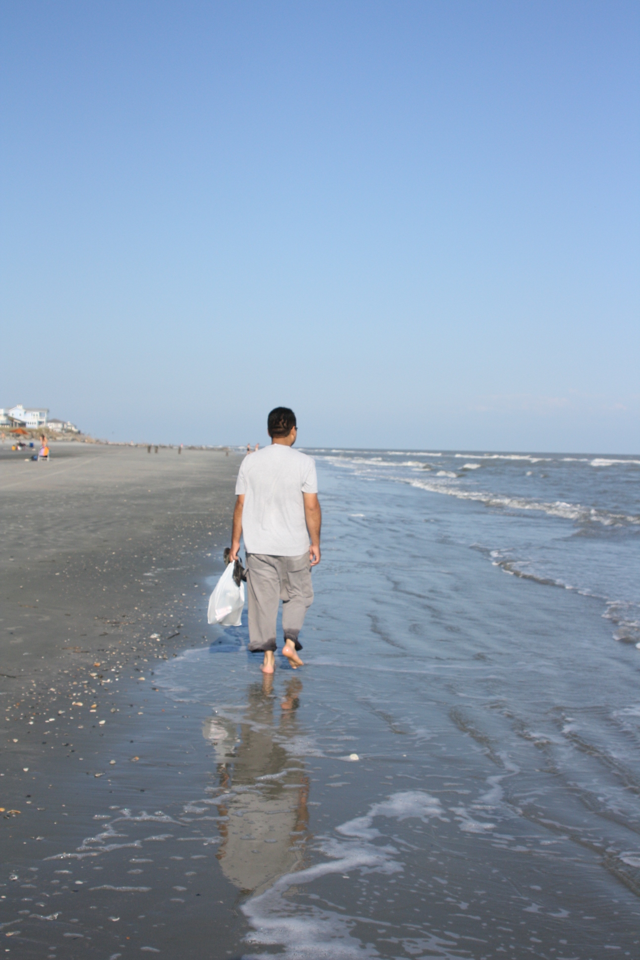 I still can’t believe I talked him into taking his shoes off in public! He refused to take them off at the car, but insisted on taking shoes and socks off once in the sand, hence the plastic bag.