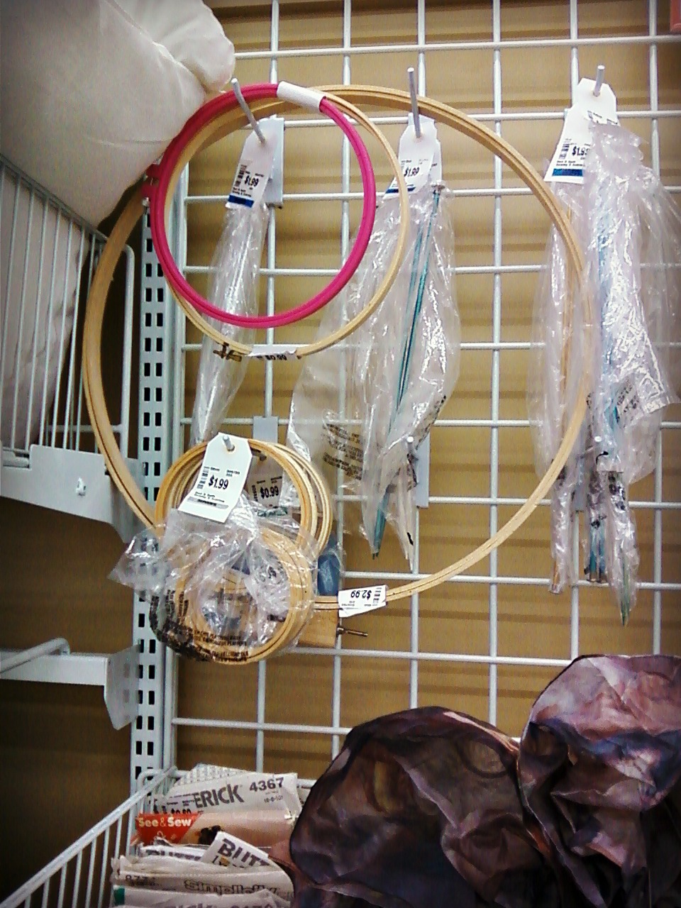 These embroidery hoops are great for wall hangings, just group a bunch of them together with a graphic fabric or even paint them a cool color for some drama.