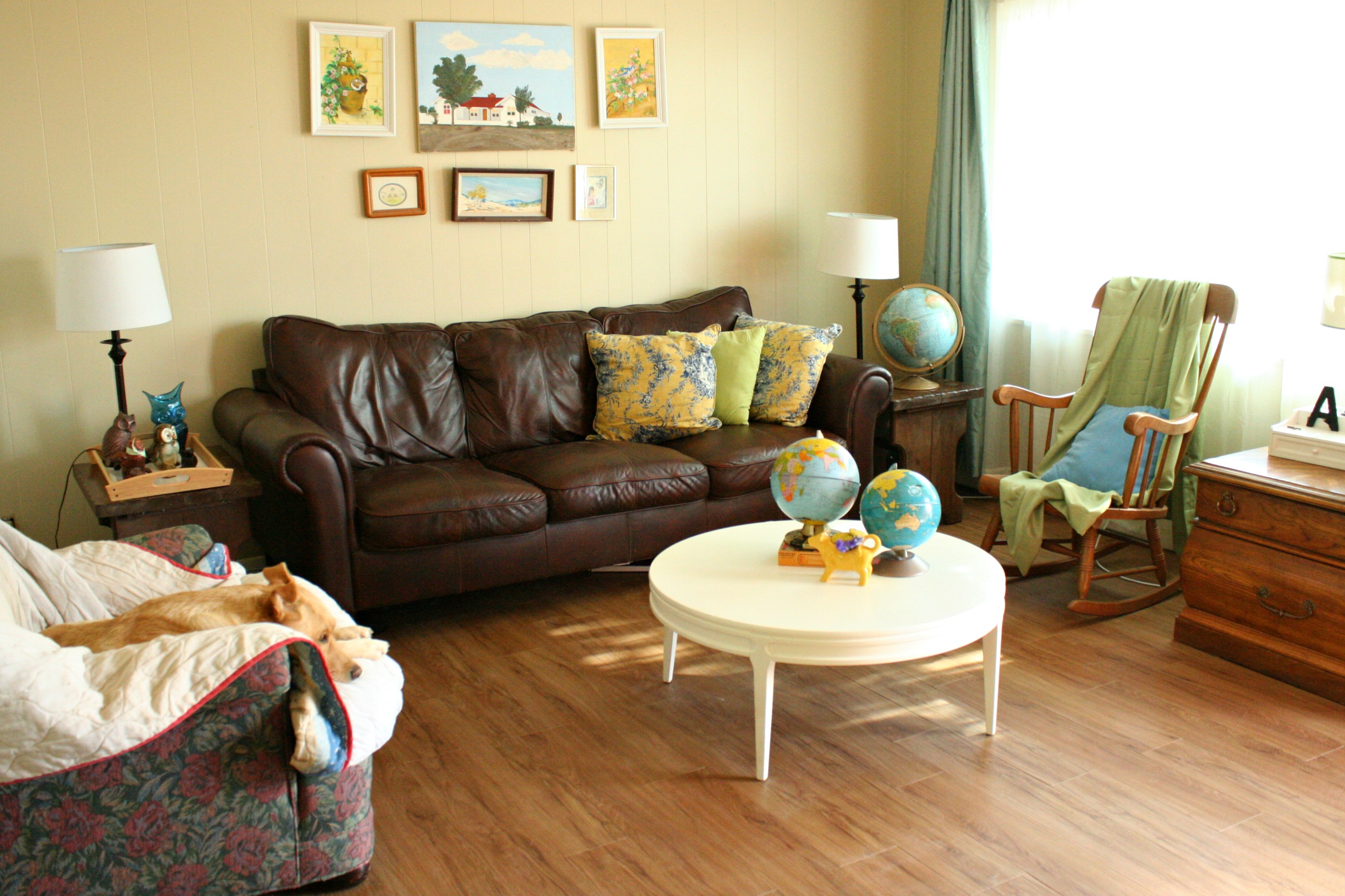 You see, I’d been looking for the perfect round yet petite coffee table to place in the petite but not round living room. I had been using an old Lane cedar chest to act as a coffee table, but with a dog that was oddly curious about the blonde veneer (she enjoyed the occasional lick) and sweating glasses of sweet tea it was time to find something a little more durable and less cherished. I toyed with the idea of using the ever trendy ottoman in place of a coffee table, but that didn’t quite work out as planned, a tray does not provide enough hard surface for our needs. We spend a lot of time in the living because, well, that’s where the TV is, and where ever we spend time we are going to be doing little projects that require a hard surface. So, I knew we needed a true coffee table, one that could with stand sweating sweet tea glasses, and even tho I don’t like to think about it, dogs that enjoy tasting the furniture (“Sharona, wipe!” Don’t ya miss Monk?).