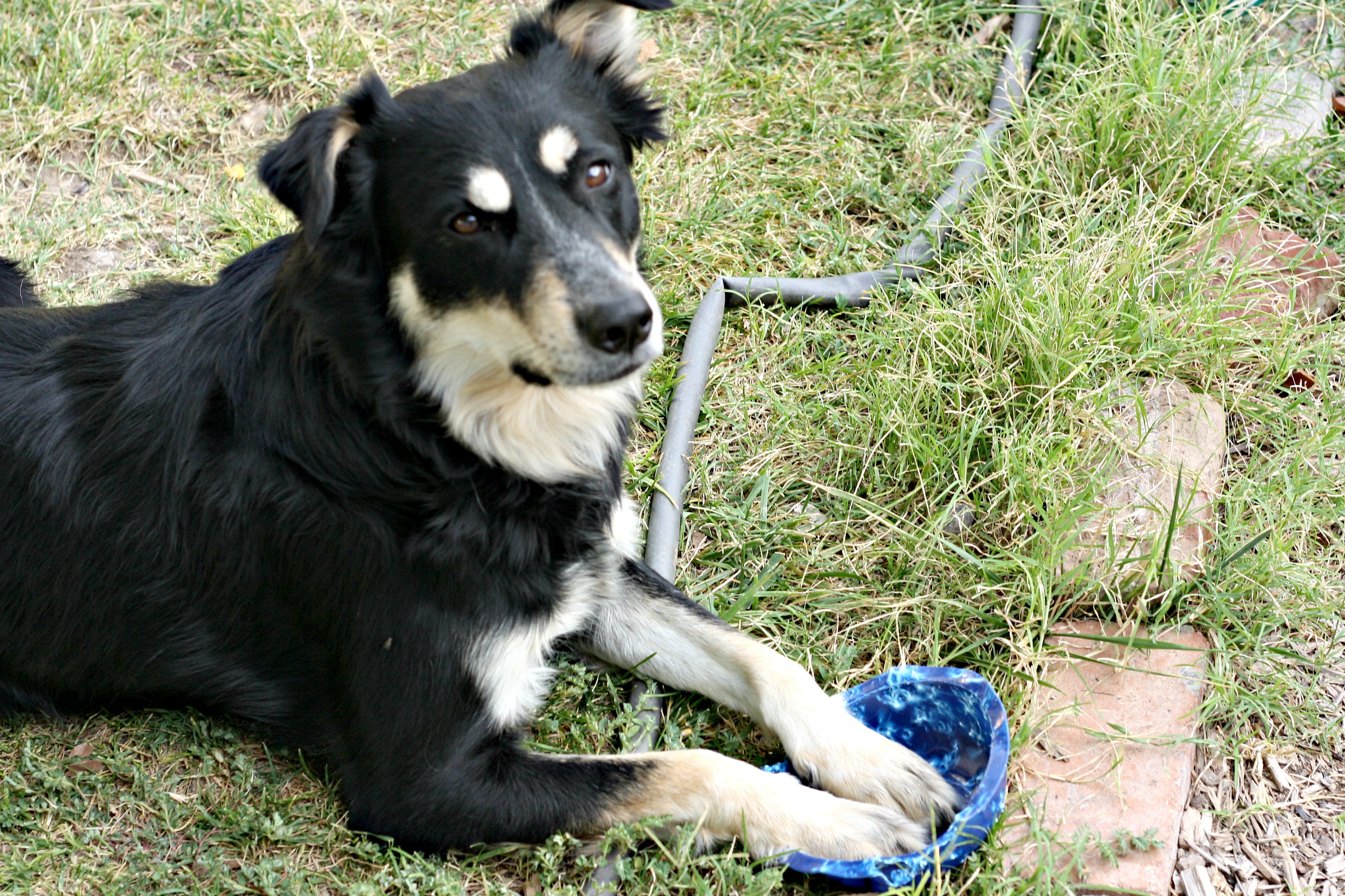 Although, Annie can be a very sweet dog, she can also be quite ruthless, especially when it comes to time outside. Poor Goldie tends to get the brunt of this ruthless-ness, as evidenced by the green eyebrow. That’s a grass stain, caused by Annie slamming Goldie’s head into the lawn. All summer long Goldie has had odd green eyebrows, it took us a couple weeks of monitoring to figure out how it was happening. Poor Goldie lets Annie-Devil take out her many frustrations on the Golden One during their outside time. I should probably mention though, Goldie and Annie are the same size, Goldie could easily take up for herself, but her passivity tends to keep her from doing so.