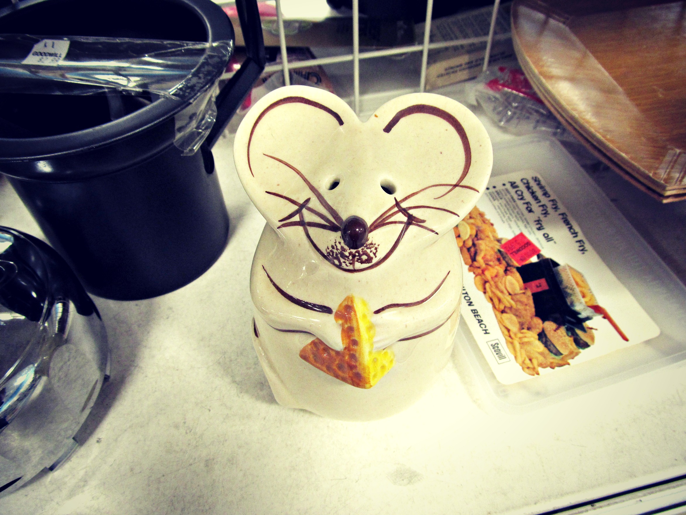 Well that wraps up a nice week of thrifting. Have you found some hidden treasures recently? Possibly a muddy bike? Maybe a cute ceramic mouse smiling back at you? Hopefully no real mice, unless your into that sort of thing.