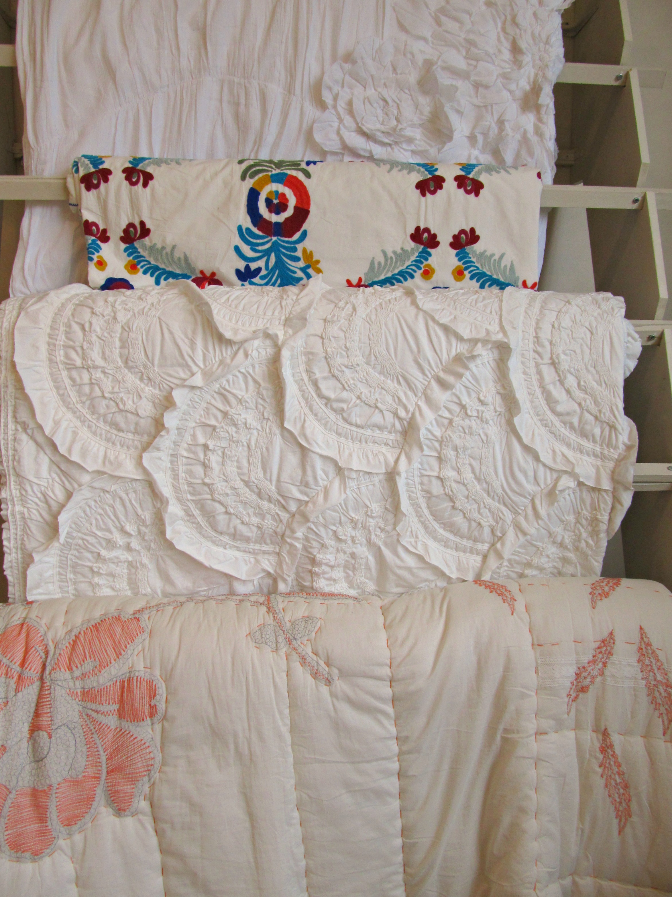 These quilts had me at, “Hey, I’m 100% cotton!” My favorite is the white ruffled one second from the bottom.
