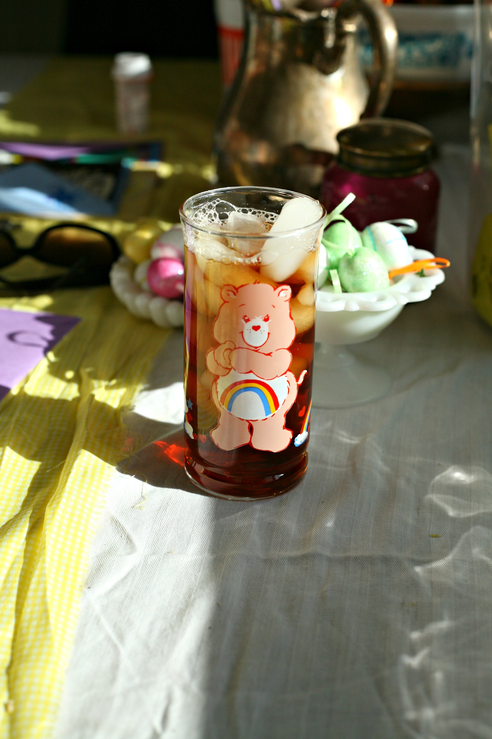 A few days after Easter, I enjoyed my first glass of tea as a 32 year old from the most mature glass in the cupboard. Who says you have to stop drinking your favorite beverage from Care Bear glasses once your 30’s come along?