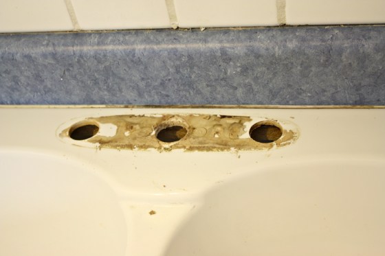 Apparently, the installer of the last faucet wanted to make sure it never came loose, evidenced by the many layers of plumbers putty. After two hours of chipping away at the putty we were left with this :