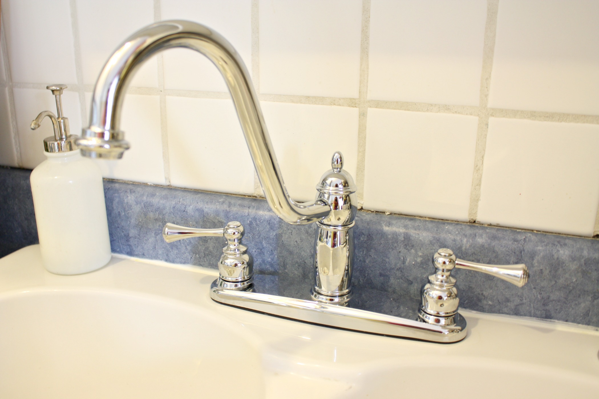 The other night though, as I was shopping for that perfect faucet, it dawned on me that I have no idea how many holes our sink has. If you aren’t aware, you need to know how many holes your sink can accomodate. For instance, if you were to buy a faucet that required 4 holes, but your sink only has space for 3, well I guess you’ll be having to let go of that perfect faucet and exchange it for one that fits the spaces on your sink. But, if you were to buy a 3 hole faucet but have 4 holes, you can always cover the 4th hole that won’t be used.