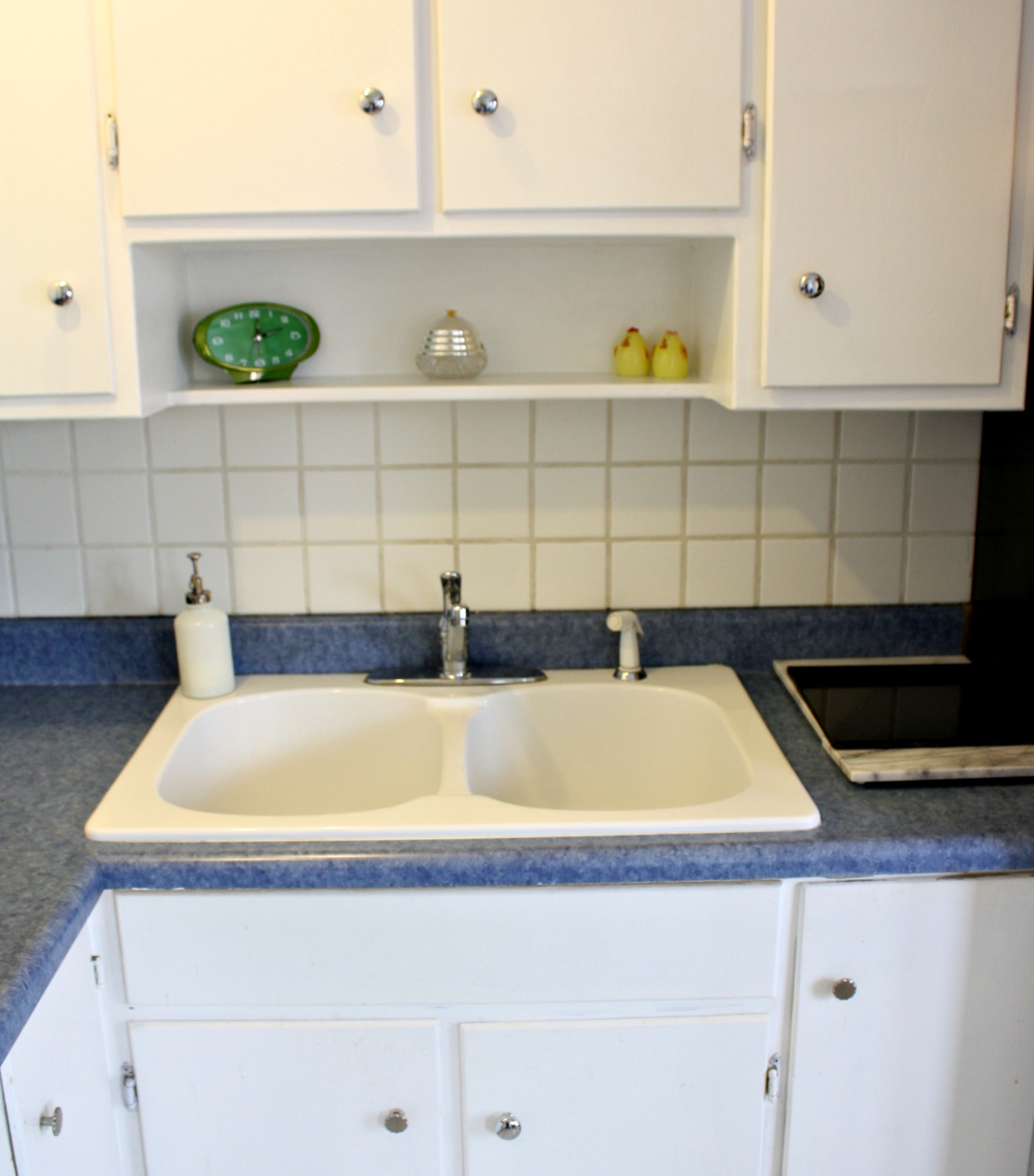 Yeah, I know how weird it is to be this excited about a new faucet. But when you are dishwasher-less and end up spending most of your time at the sink, it’s so very important to have something pretty and functional to look at. Especially when your backsplash is old and the grout is dirty. I’m experimenting with different techniques to rid the backsplash of the many years of grime that have settled into the grout. Stay tuned for that update.