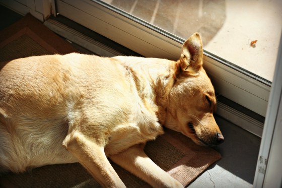 Although, Annie can be a very sweet dog, she can also be quite ruthless, especially when it comes to time outside. Poor Goldie tends to get the brunt of this ruthless-ness, as evidenced by the green eyebrow. That’s a grass stain, caused by Annie slamming Goldie’s head into the lawn. All summer long Goldie has had odd green eyebrows, it took us a couple weeks of monitoring to figure out how it was happening. Poor Goldie lets Annie-Devil take out her many frustrations on the Golden One during their outside time. I should probably mention though, Goldie and Annie are the same size, Goldie could easily take up for herself, but her passivity tends to keep her from doing so.