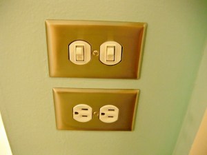 I’m still getting the hang of this blog thing, and this taking pretty pictures of my house thing. So you will have to bear my horrible taken-right-before-bed-so-all-the-pictures-are-dark habit for the time being. Below you will find the new shiney light switch and outlet covers I bought on sale at Target. Not bad for $3 and the package included two covers! SCORE!